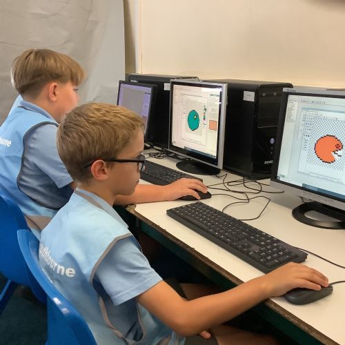 Eagle Class enjoyed their first visit of the year to Bourne Community College, as part of their ENTHUSE project. They programmed a sprite on ‘Gamemaker’ in computing, and explored endo- and exothermic reactions in science.